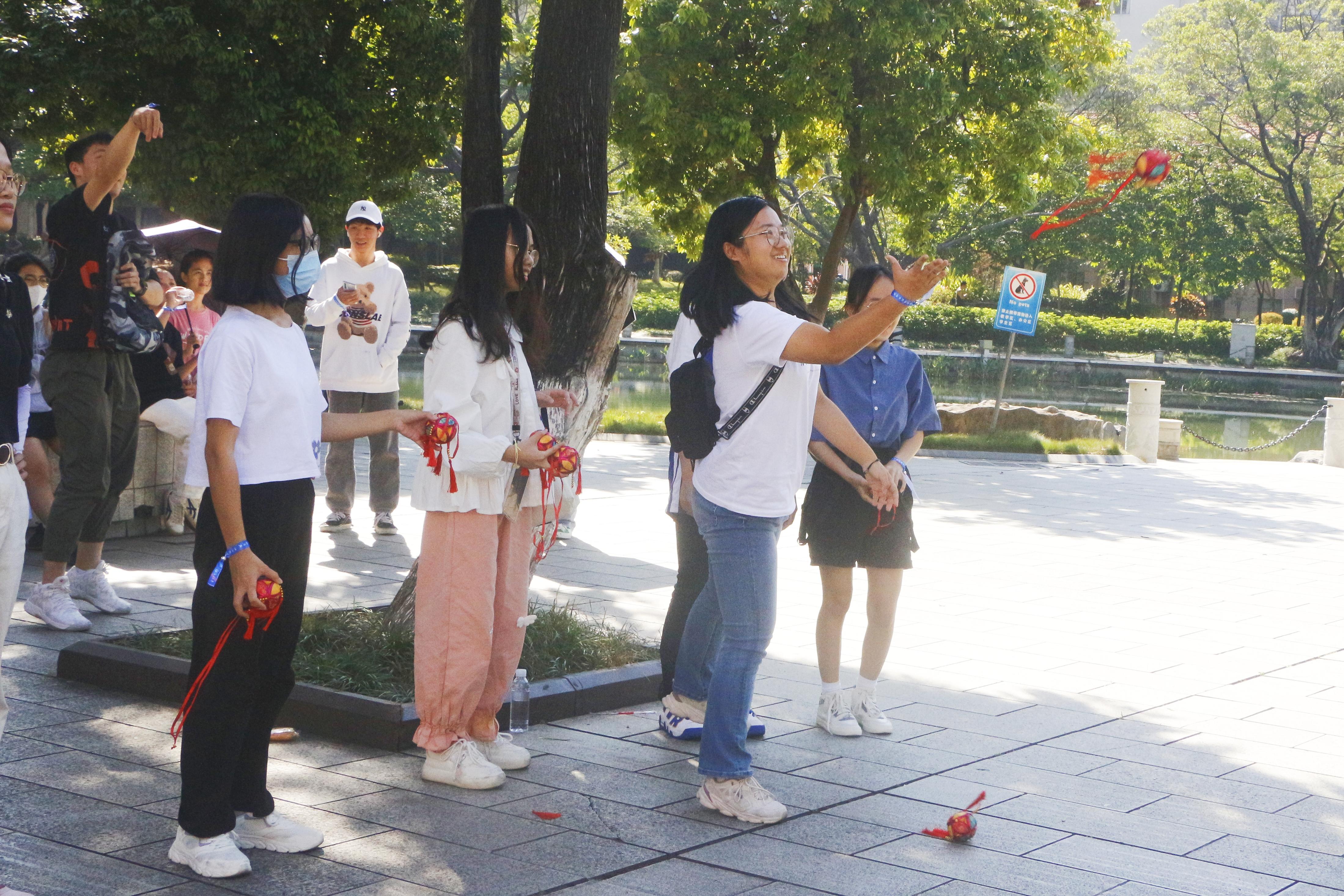本次活动以游戏为载体,以运动为依托,分别在育才广场、大礼堂、汇学堂、图书馆、大学生活动中心、学生军纪念碑等校园标志性区域设置了6个游戏站点。36365线路检测登录入口2022级本科生全员参与,随机分为20组,通过不同路径前往游戏站点,进行了“你的名字”、背篓接绣球、胯下传球、两人三足、夹乒乓球、接力长绳等寓教于乐的团队训练项目,使得大家既在轻松有趣的氛围里,以游戏的形式增进了彼此间了解和信任,又在充满挑战的环境中,以团队的方式感受到集体的力量和智慧。