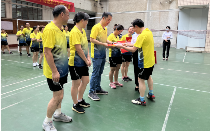 韦祖樟副院长为获得“气排球新秀”奖的运动员颁奖