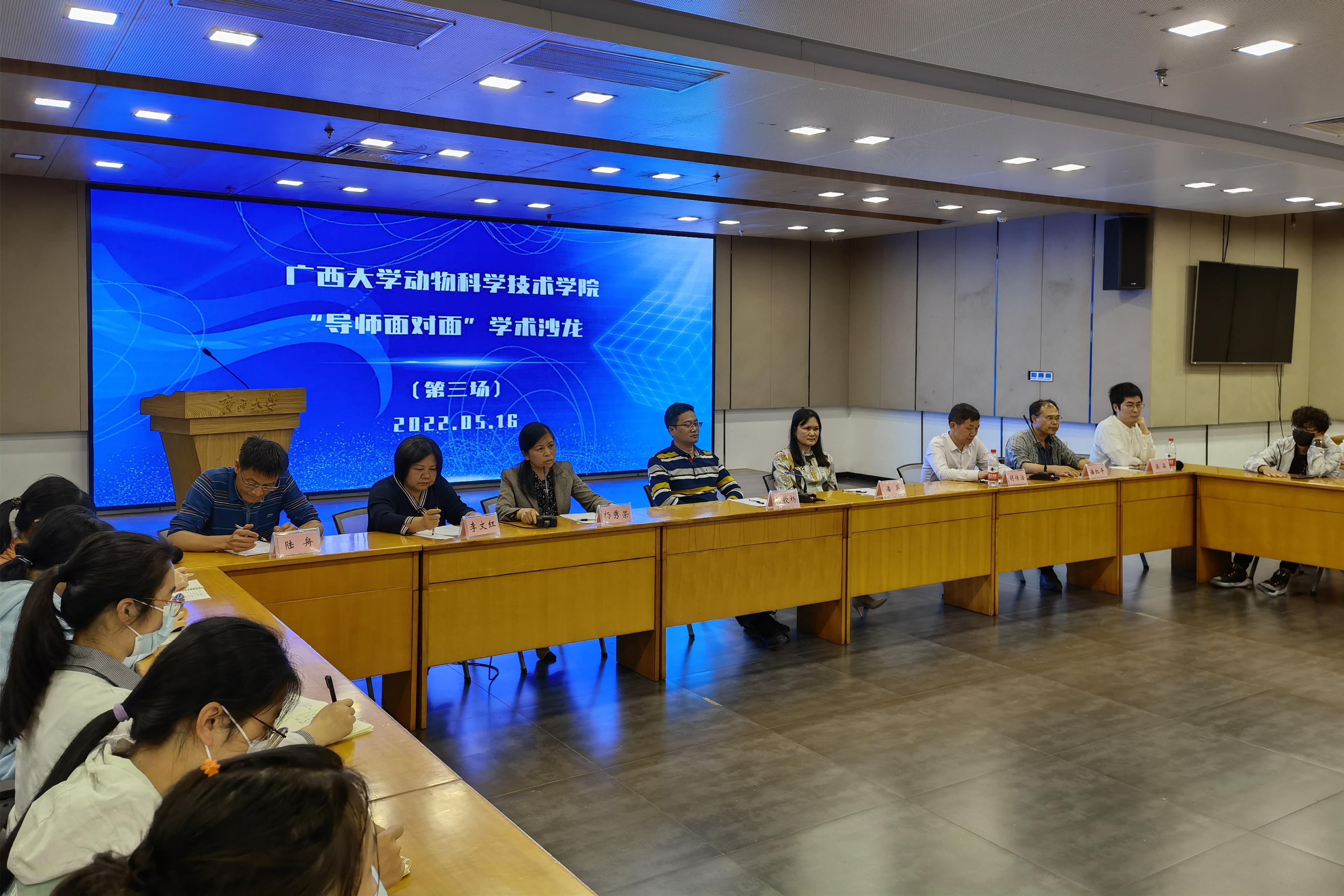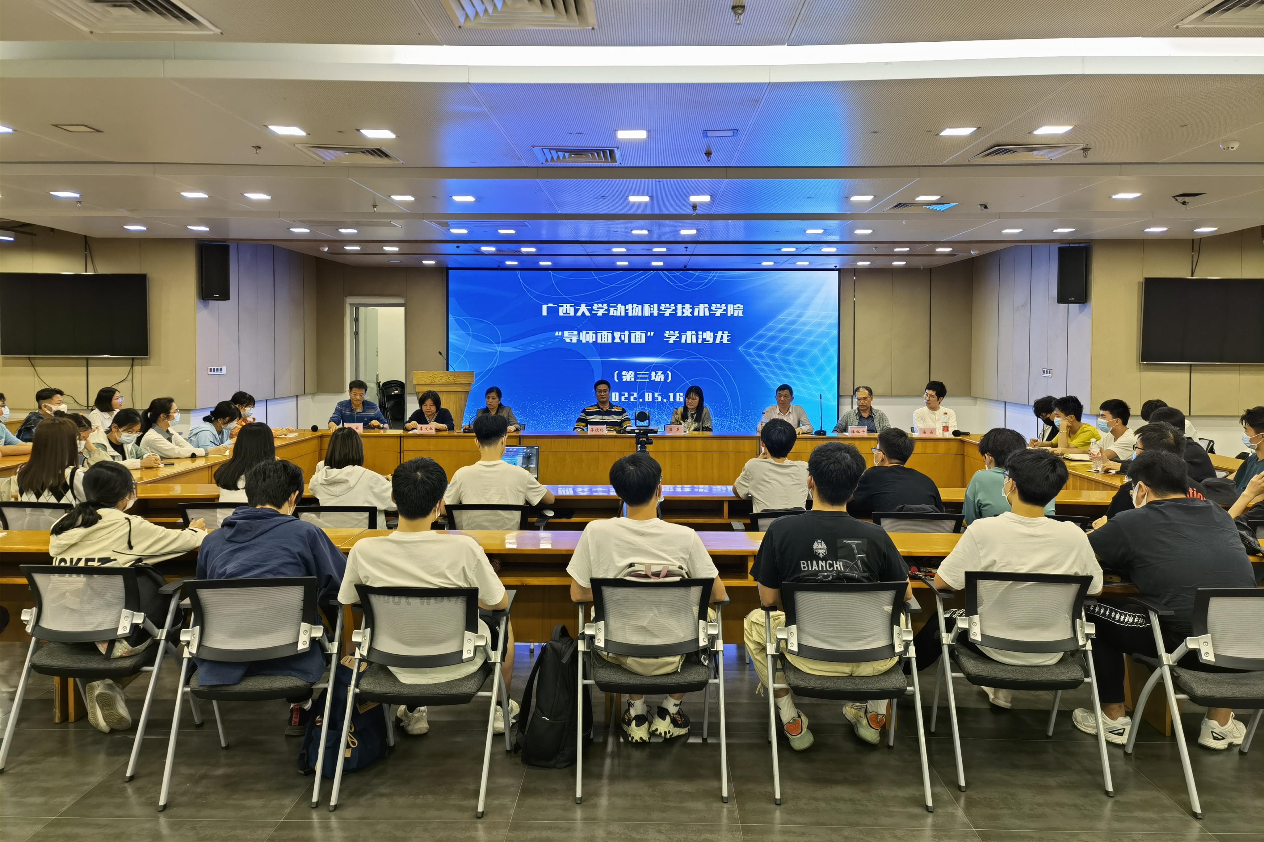 为巩固专业思想,加强学风建设,增进师生交流,营造学术氛围,5月16日晚上,36365线路检测登录入口在大学生活动中心三楼会议室举办“导师面对面”学术沙龙(第三场),邀请蒋钦杨、潘英、杨秀荣、胡传活、李文红、潘红平、陆舟、梁晶8位导师嘉宾到场分享个人经历、人才培养和科研方向,并与学生互动交流,共同探讨学业规划、职业发展和个人成长。此次学术沙龙采用现场会议、网络直播相结合的形式,共有80余名学生参与其中。