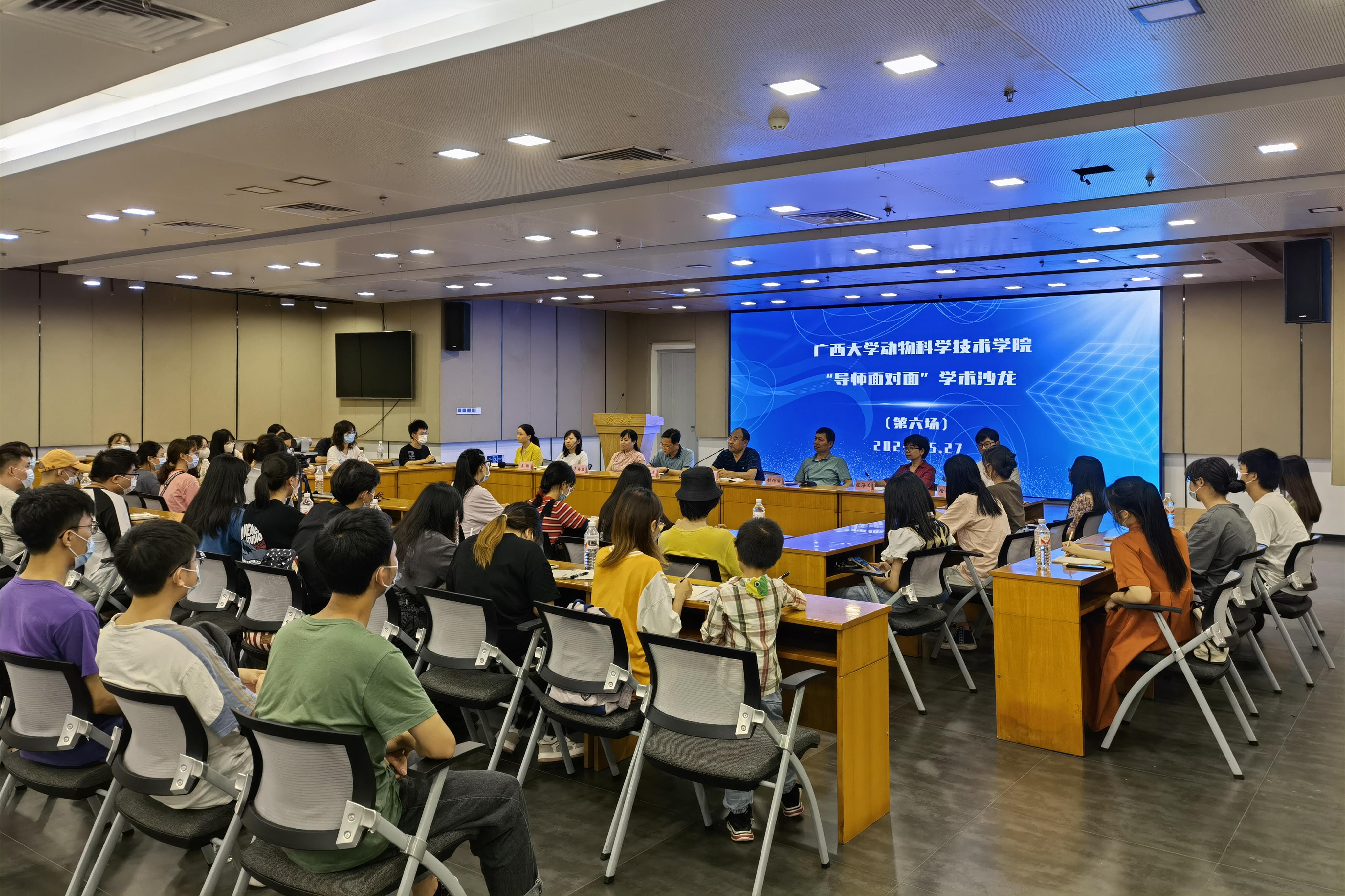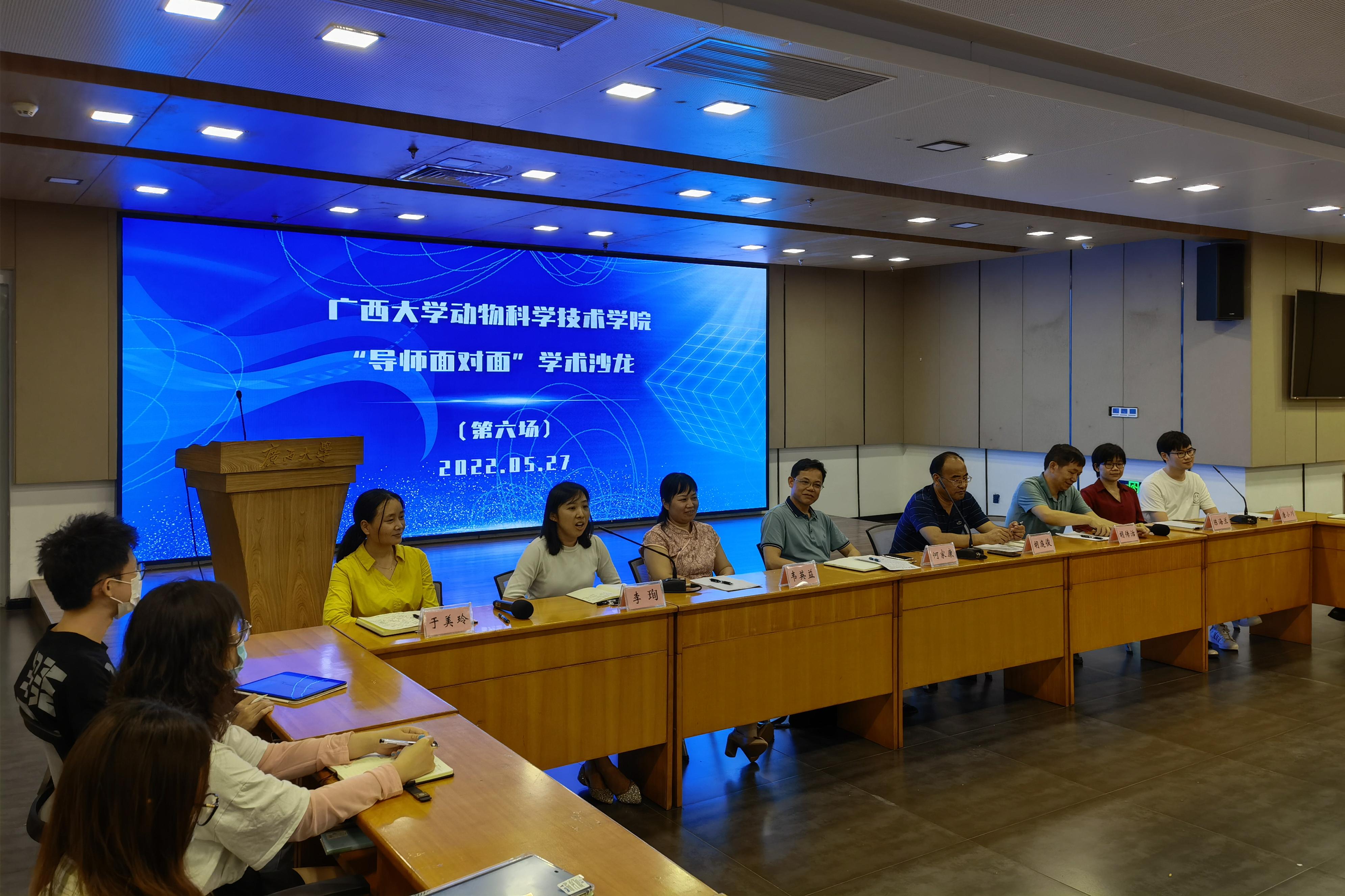 为巩固专业思想,加强学风建设,增进师生交流,营造学术氛围,5月27日晚上,36365线路检测登录入口在大学生活动中心三楼会议室举办“导师面对面”学术沙龙(第六场),邀请何家康、胡庭俊、胡传活、韦英益、陈海兰、李珣、唐小川、于美玲8位导师嘉宾到场分享个人经历、人才培养和科研方向,并与学生互动交流,共同探讨学业规划、职业发展和个人成长。此次学术沙龙采用现场会议、网络直播相结合的形式,共有100余名学生参与其中。