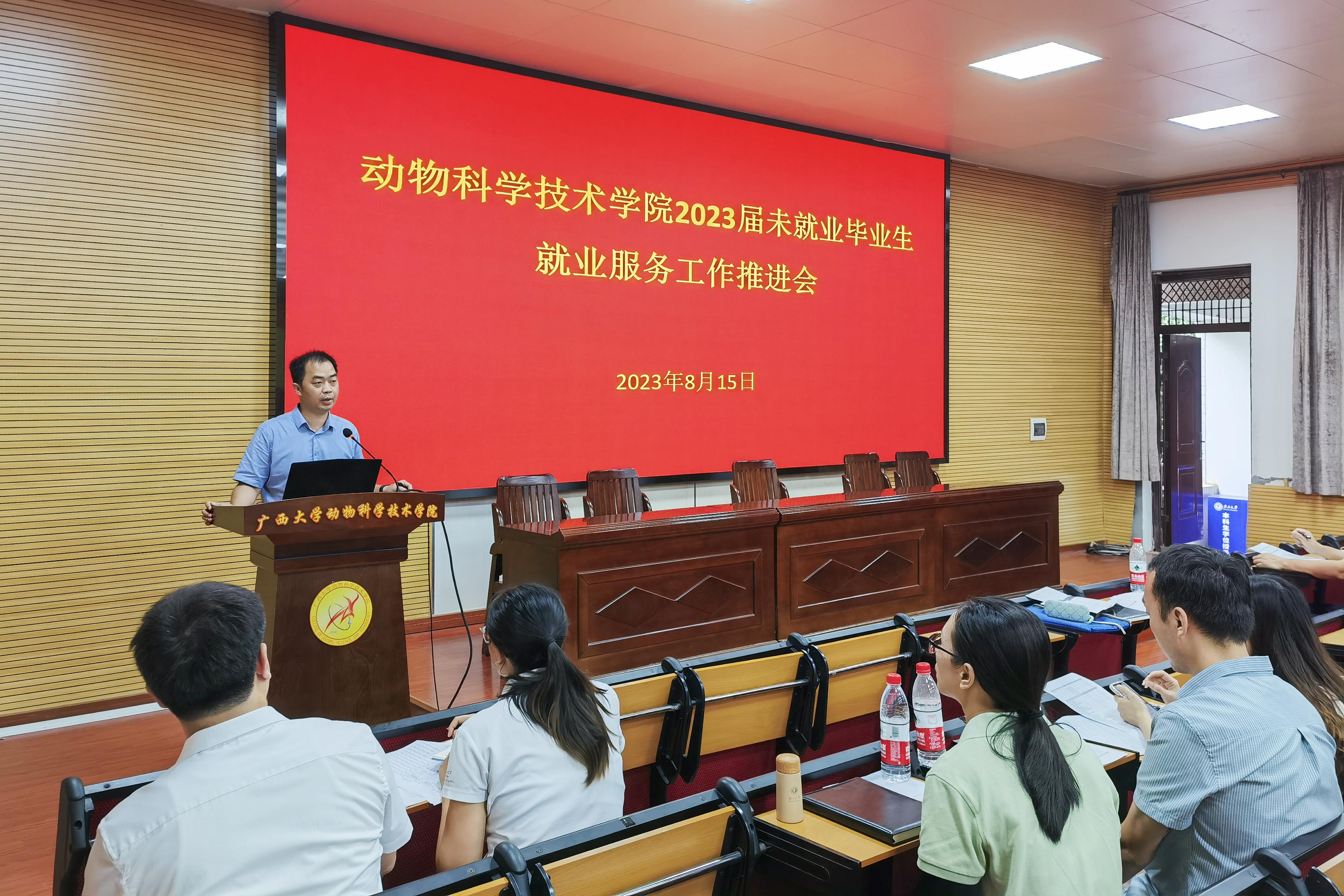 为贯彻落实党中央、国务院关于高校毕业生就业工作的决策部署,全力推进毕业生更加充分更高质量就业,8月15日上午,36365线路检测登录入口在学院318报告厅召开2023届未就业毕业生就业服务工作推进会。36365线路检测登录入口党委书记韦小强,院长陆阳清,党委副书记沙建,副院长宁鹏飞、韦祖樟,以及专职辅导员、研究生导师、毕业班级班主任参加会议。