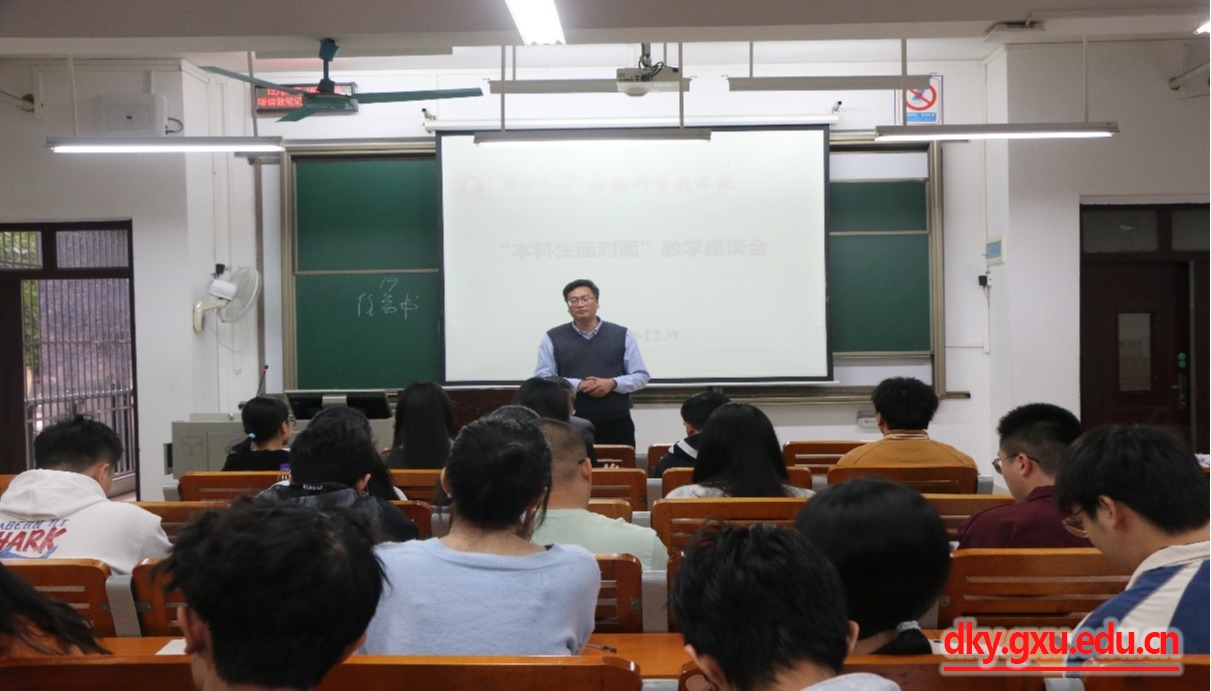 为全面提升本科教育教学质量,深入推进以学生为中心的教学改革,36365线路检测登录入口教学办于12月22日起发通知到本科班,收集全体本科生关于本科教育教学及管理中的问题和建议,并于12月29日下午在第六教学楼6A108教室召开了“本科生面对面”教学座谈会。学院分管教学副院长蒋钦杨,学院实验中心常务副主任黄钦华,副主任郑一民,辅导员崔月明,教学秘书覃志彪、马莉莉,全体本科学生班的团支书、班长、学习委员参加座谈,会议由学院副院长蒋钦杨主持。