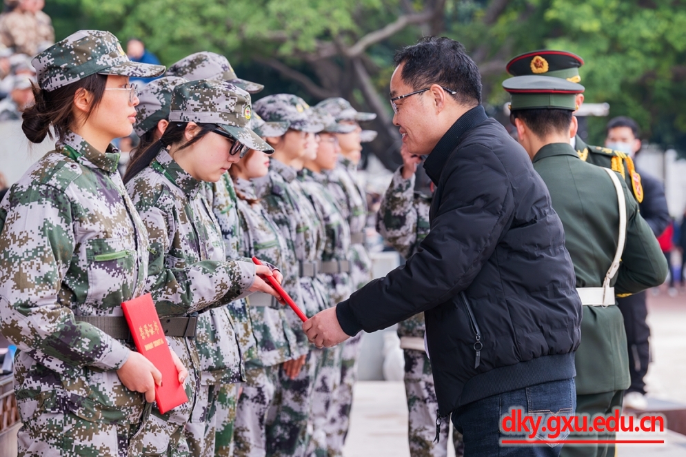 马献力向军训中取得优异成绩的先进集体和先进个人表示祝贺,并向全体参训学生提出要求:要厚植家国情怀,做新时代爱国青年;要勇担强国使命,做新时代有志青年;要练就过硬本领,做新时代有为青年,在星辰大海、奋进未来的征途中,乘风破浪、砥砺前行,传承西大人的使命荣光,谱写自己的青春华章,让青春在全面建设社会主义现代化国家的火热实践中绽放绚丽之花。