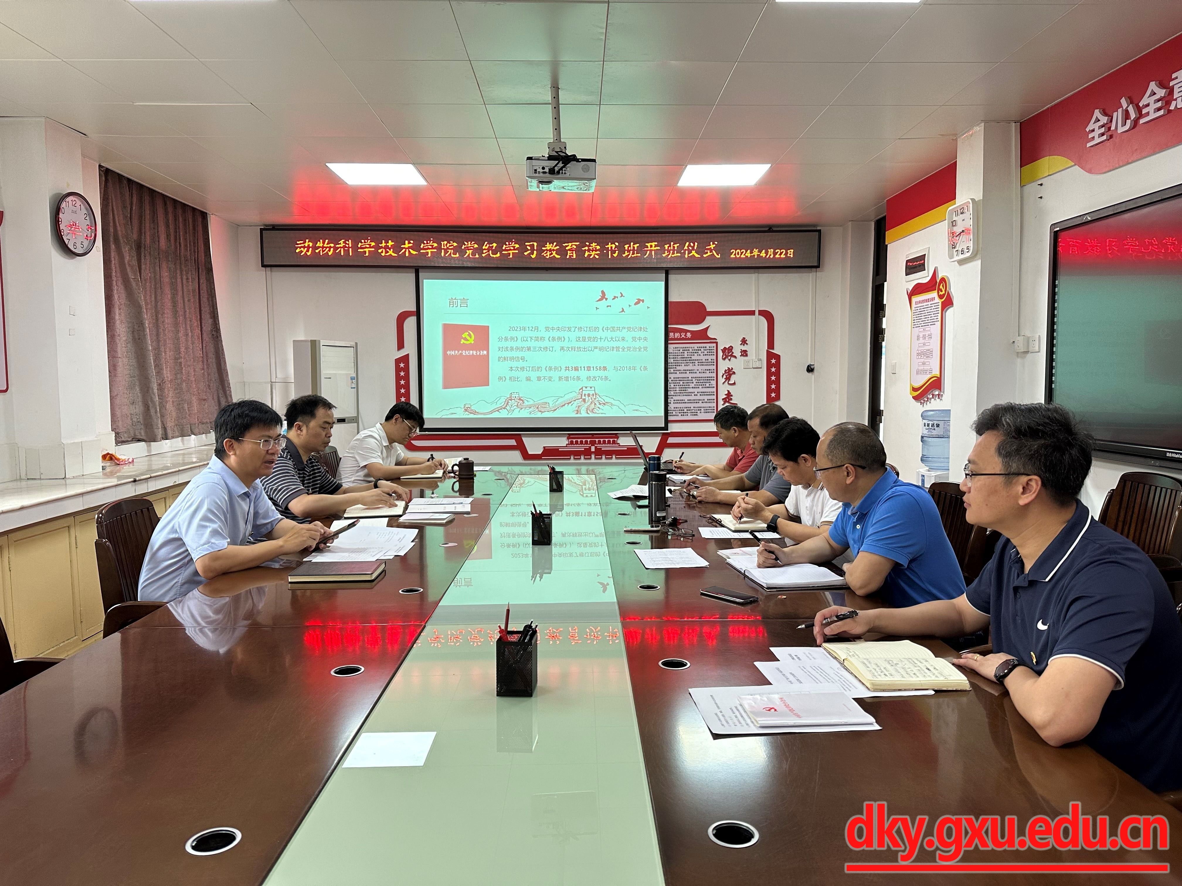根据中央、自治区、36365线路检测登录入口党委关于党纪学习教育的部署要求,4月22日上午,36365线路检测登录入口召开党纪学习教育读书班开班仪式。36365线路检测登录入口党委书记韦小强主持开班仪式,并进行新修订的《中国共产党纪律处分条例》(以下简称《条例》)专题辅导报告。