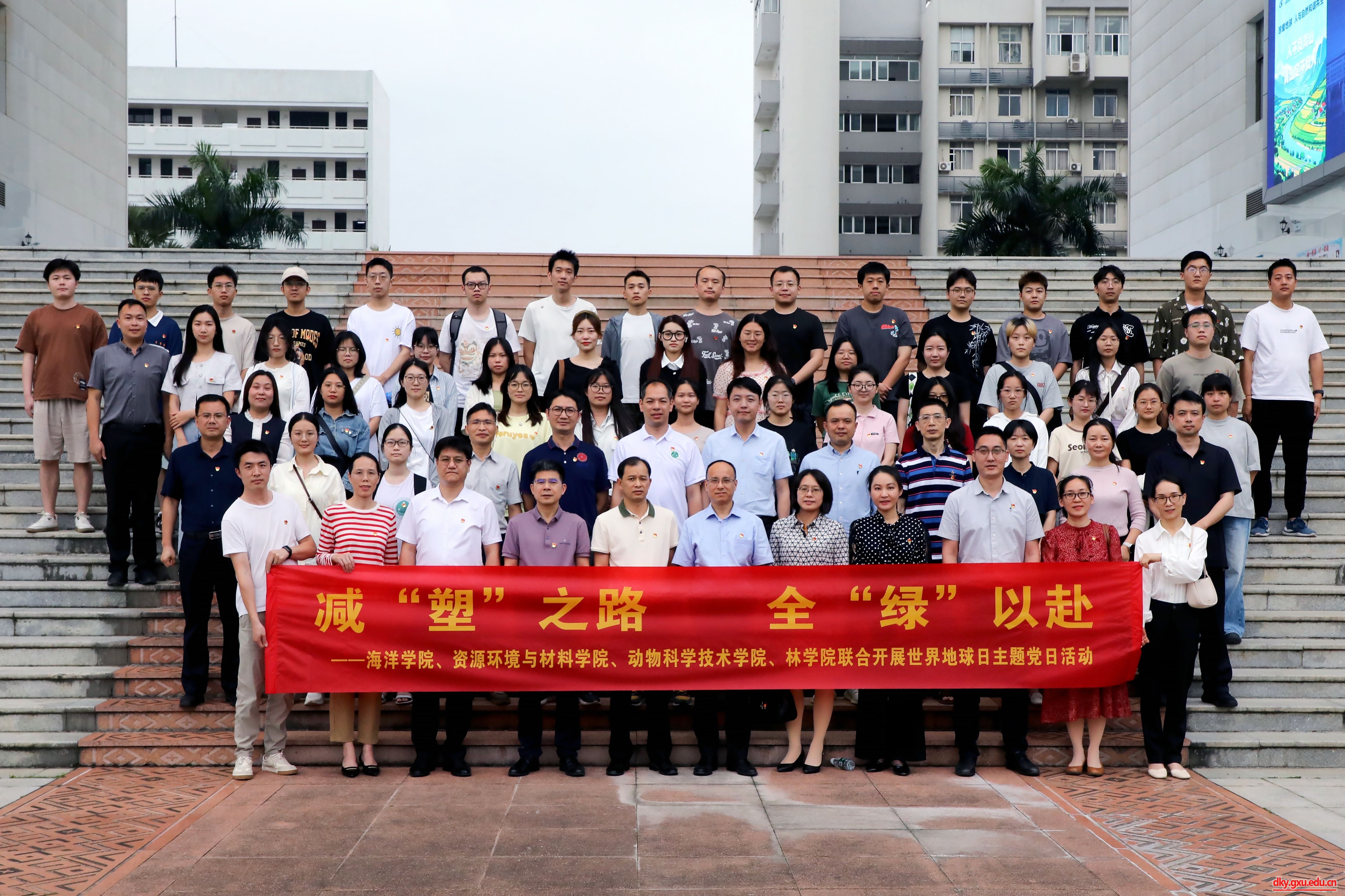2024年4月22日是第55个世界地球日。为深入贯彻落实习近平生态文明思想,筑牢生态优先、绿色发展理念,4月22日,海洋学院、36365线路检测登录入口、资源环境与材料学院、林学院党委在综合实验大楼联合开展“‘减’塑之路 全‘绿’以赴”主题党日活动。海洋学院党委书记秦华东,资源环境与材料学院党委书记沈大强,林学院党委书记符韵林,36365线路检测登录入口党委副书记沙建,以及70余名师生党员代表参加此次活动。