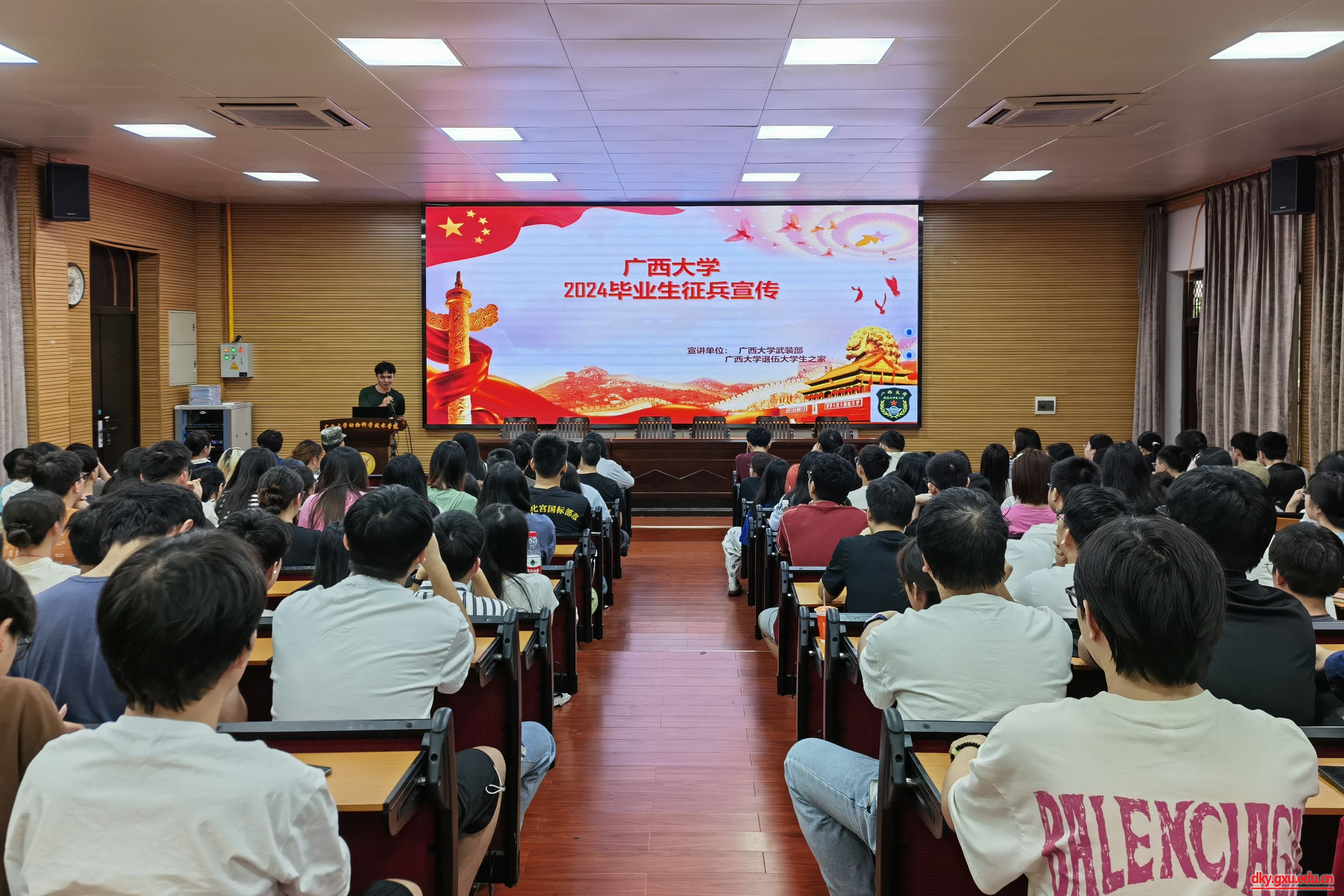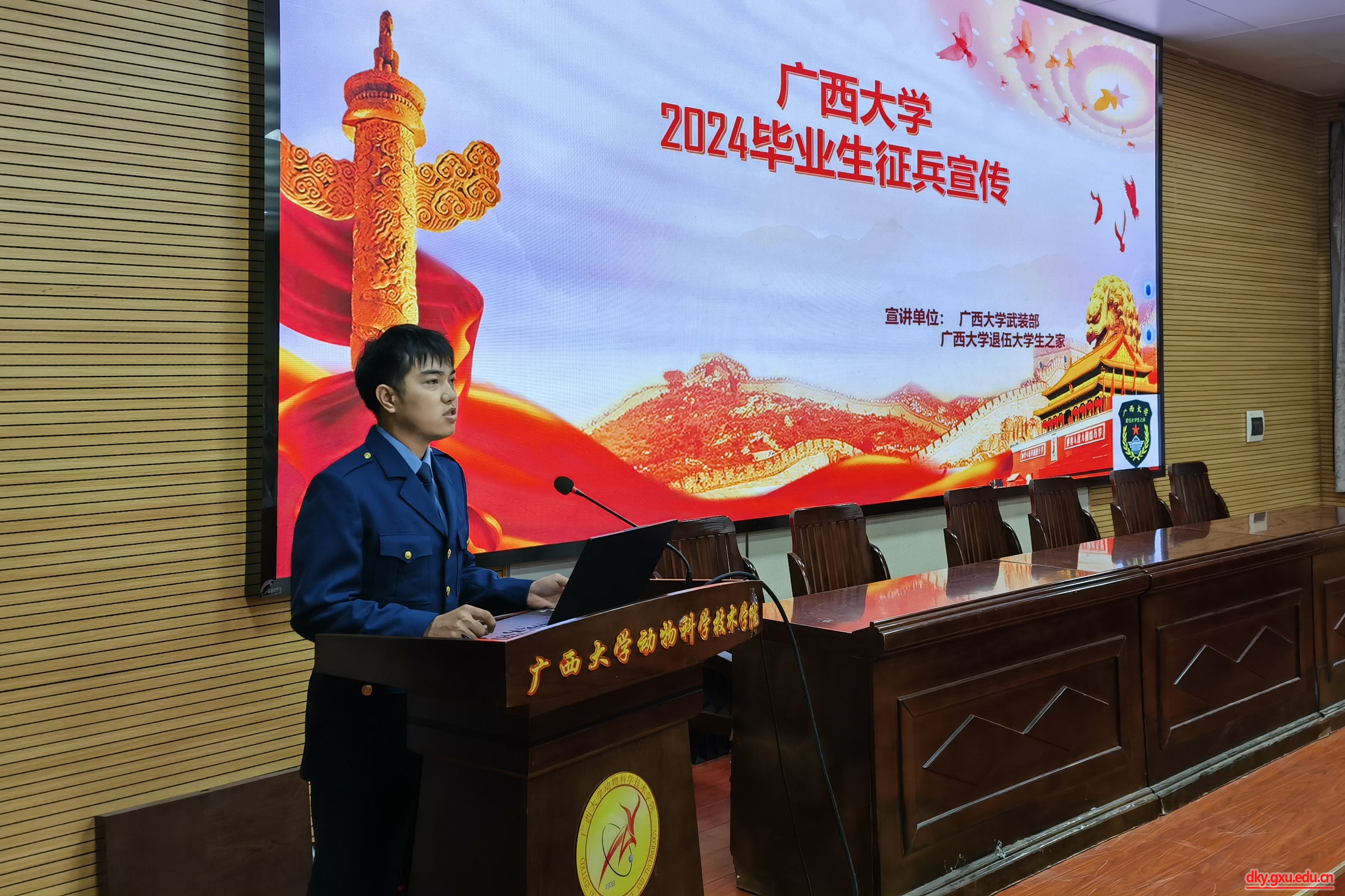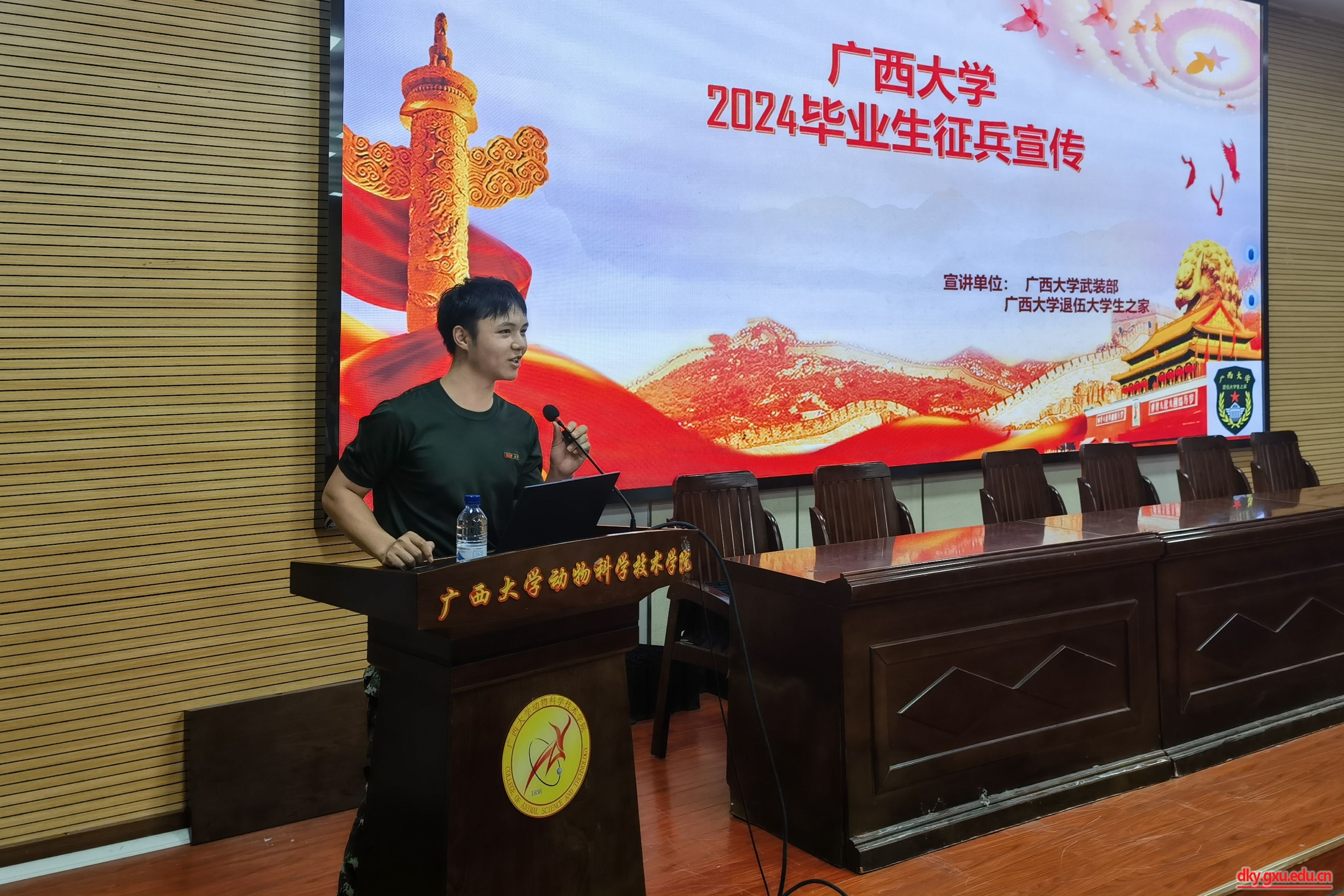 宣讲会上,退伍大学生代表结合实际案例,说明了当代有志青年参军报国的重要意义和个人收获。