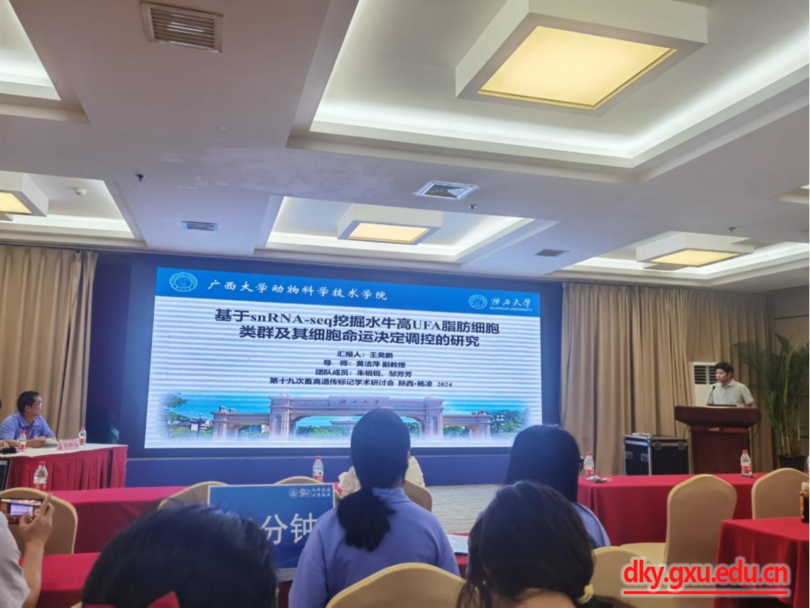 本次大会以“多组学数据驱动的动物遗传标记创新”为主题,汇聚了国内外从事畜禽遗传标记研究、开发和应用的专家、学者和技术人员,对本领域最前沿的研究进展和成果进行专题报告和讨论。与会者就基因组学、表观遗传学、单细胞转录组学、基因编辑及转基因动物等新技术及其在畜禽遗传标记和动物育种中的应用进行专题报告与讨论。会议分不同场次分享了6个特邀报告、71个口头报告和海报展示94篇,凝聚了全国畜禽遗传标记研究领域的最新科研成果。在本次会议中,我院博士研究生钟丹丹(导师:李辉)和硕士研究生王昊鹏(导师:黄洁萍)分别做了口头汇报,博士生朱锐锐(导师:黄洁萍)和李雪华(导师:赵云翔)以及硕士研究生赵家辉(导师:李辉)和康雨锦(导师:李辉)做了墙报。