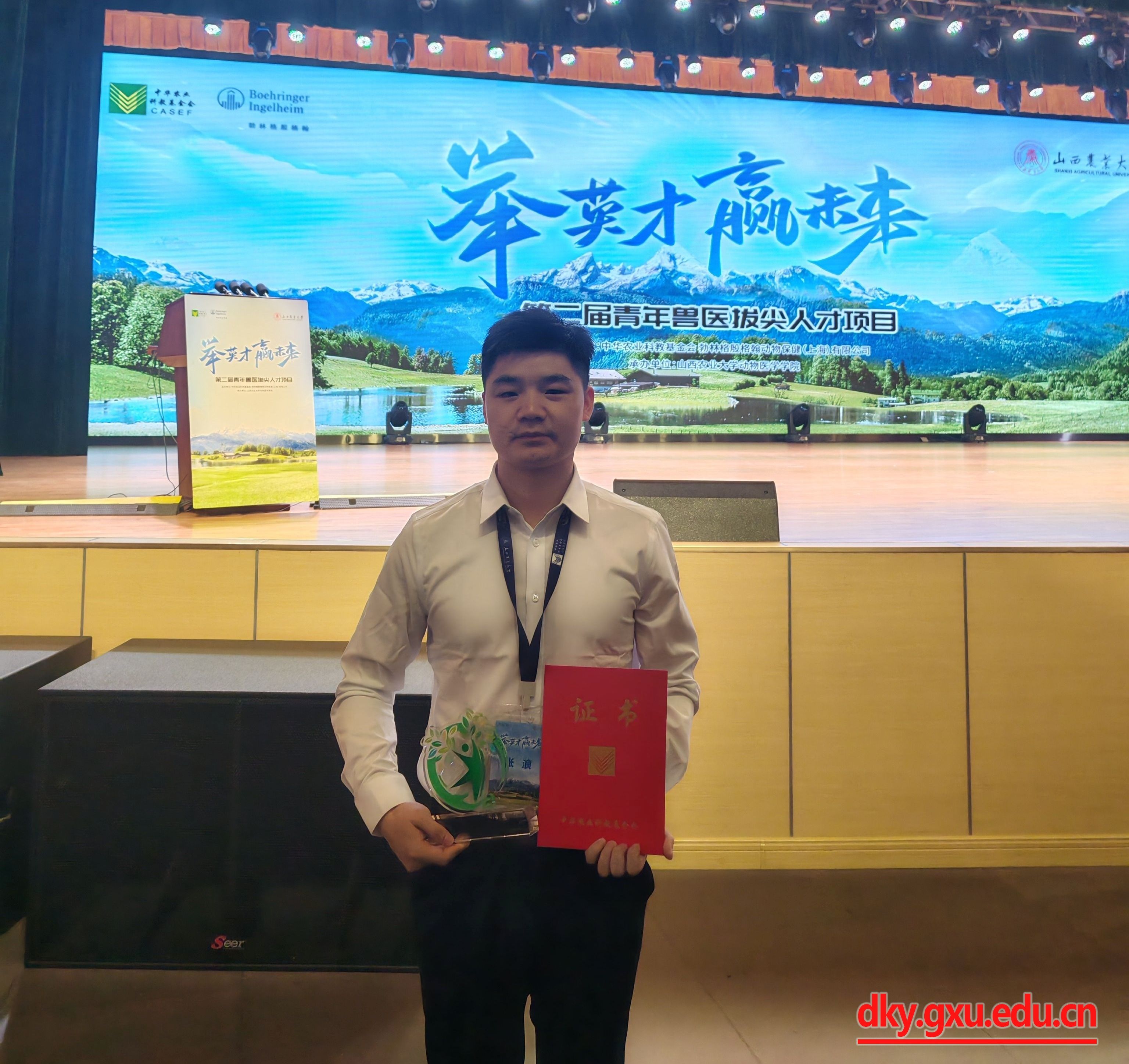 我院2022级兽医博士生张浪参加了2024年青年兽医拔尖人才(学生)的选拔。经过项目形式审查、线上评审,现场展示和评选,最终我院2022级兽医博士生张浪成功入选2024年全国青年兽医拔尖人才(学生),同时作为获奖学生代表发言。