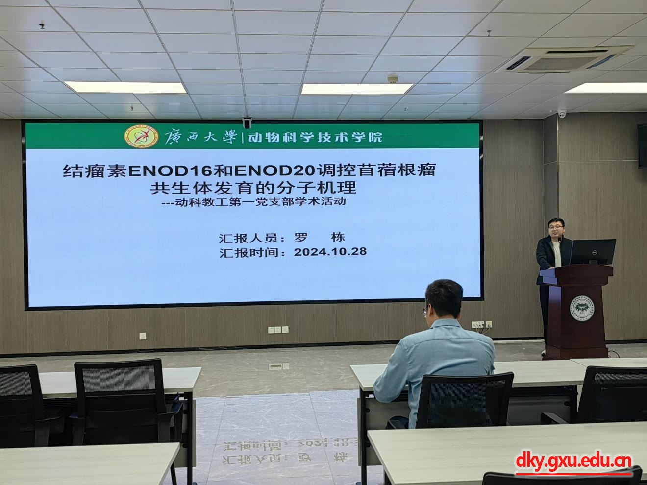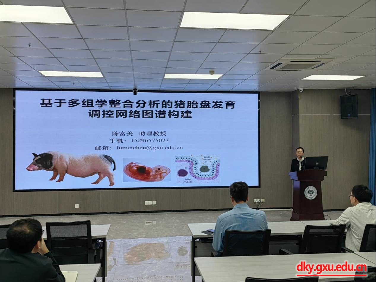 之后,陈富美同志以“基于多组学整合分析的猪胎盘发育调控网络图谱构建”为主题,系统介绍了她课题组近期围绕解析猪胎盘发育分子调控机制所开展的创新型研究;罗栋同志以“结瘤素ENOD16和ENOD20调控苜蓿根瘤共生体发育的分子机理”主题,深入介绍他过去几年在苜蓿根瘤共生体发育分子调控机制方面的最新进展。这两位党员同志的科研分享,受到在场党员同志的一致好评,并引发热烈的讨论。蒋钦杨、梁兴伟、杨小淦、邓彦飞等同志积极提问,与报告人做了较为深入的交流和讨论。