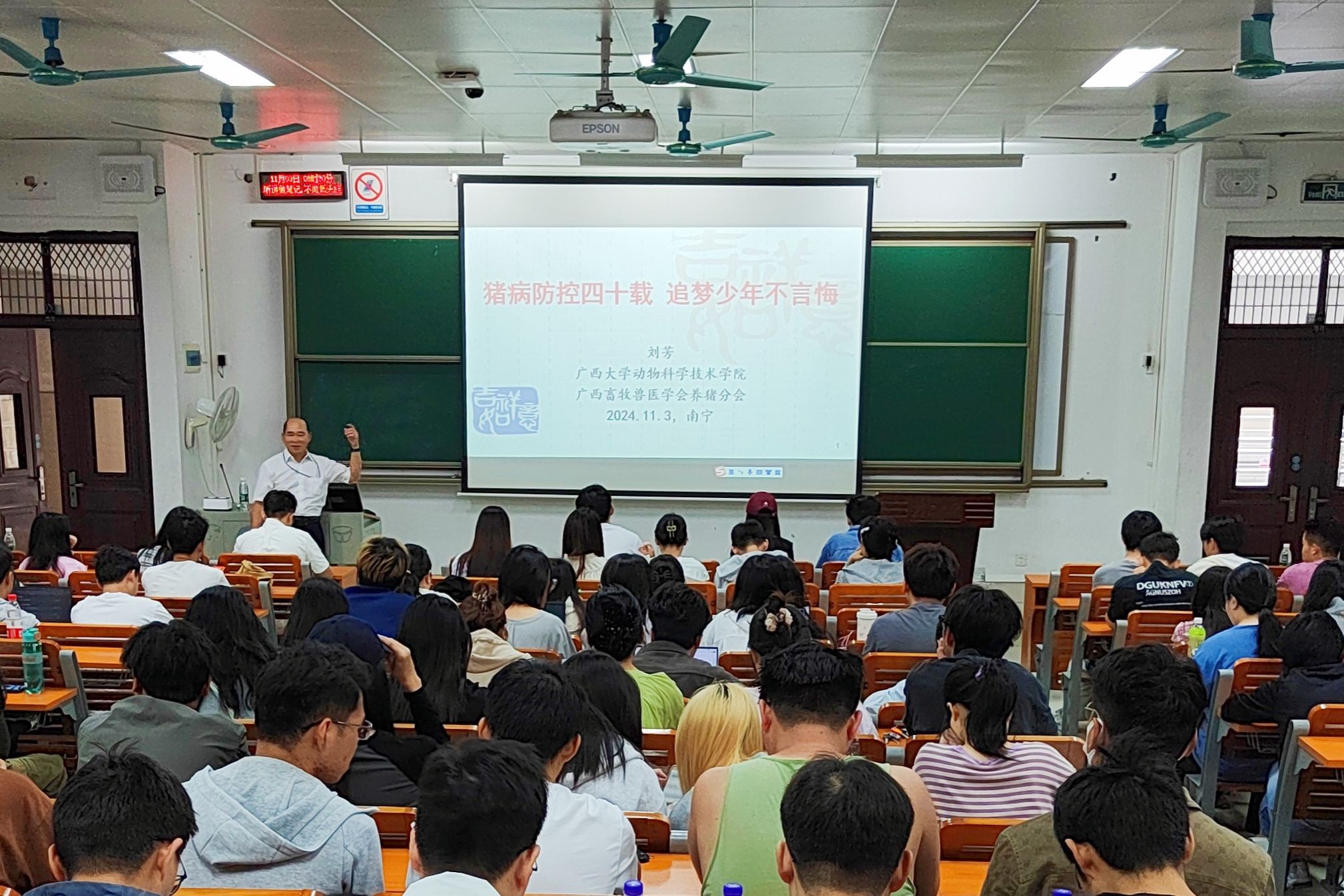 为搭建研究生与导师之间的互动平台,营造良好的学术文化交流氛围,11月3日上午,由36365线路检测登录入口研究生会主办,36365线路检测登录入口研究生会承办的第151期“导师有约”活动在第六教学楼B103教室举行,主题为“猪病防控四十载,追梦少年不言悔”,广西畜牧兽医学会养猪分会副理事长兼秘书长,高级实验师刘芳受邀主讲。200余名研究生代表现场聆听报告。