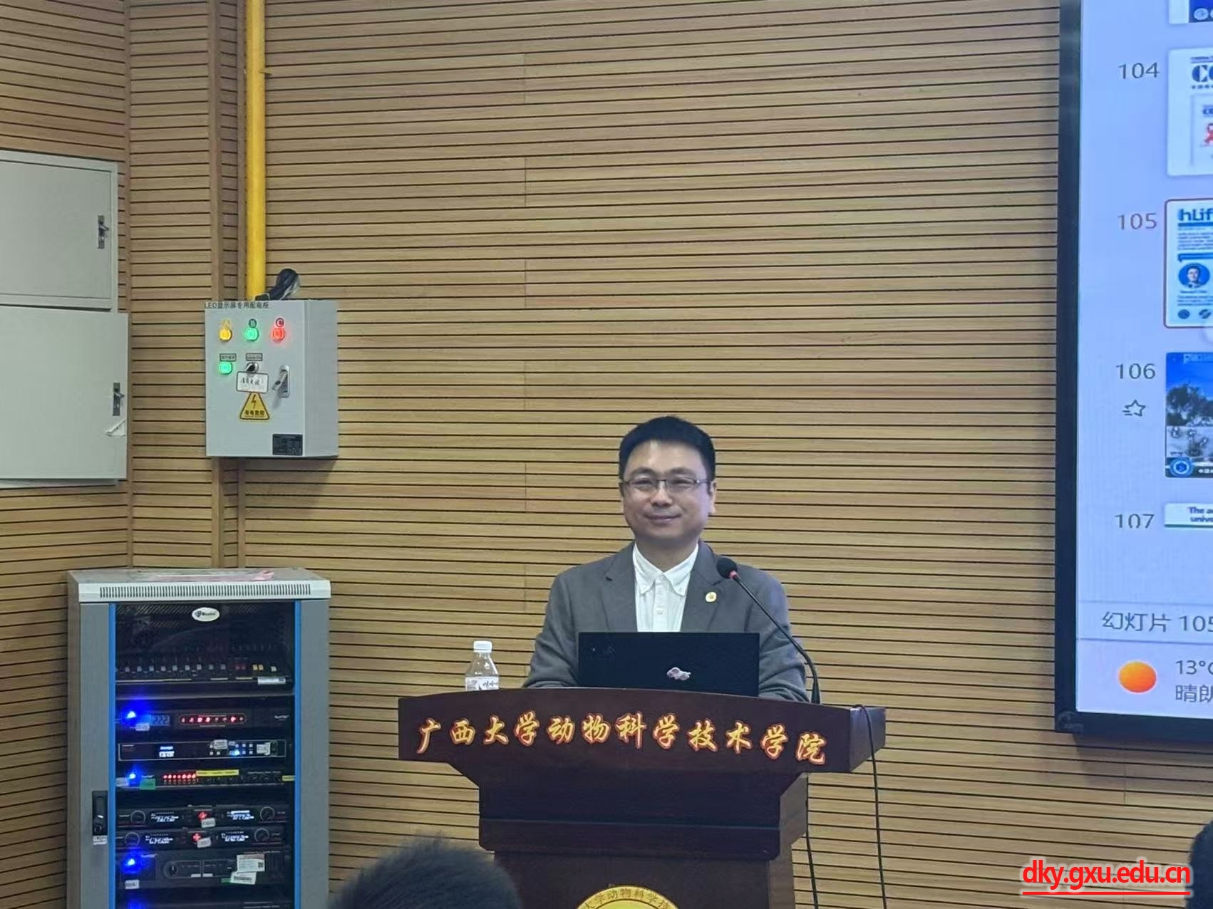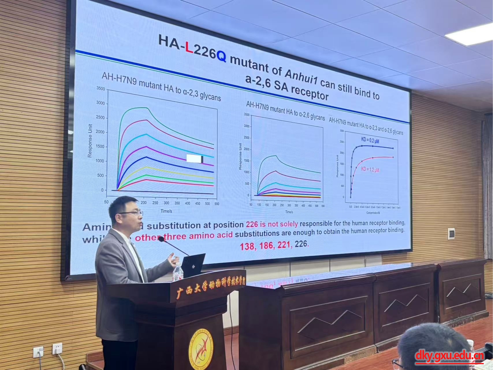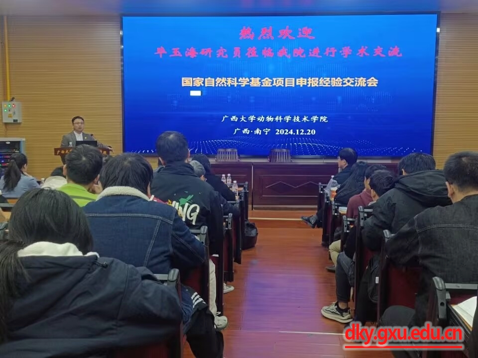 12月20日上午,中国科学院微生物研究所毕玉海研究员受广西大学36365线路检测登录入口的邀请在学院318报告厅作题为“禽流感病毒的跨种传播机制与高风险病毒预警”的学术报告。36365线路检测登录入口陆阳清院长、罗廷荣教授、陈樱教授等教师以及200多名师生参加报告会。报告会由36365线路检测登录入口副院长何家康教授主持。