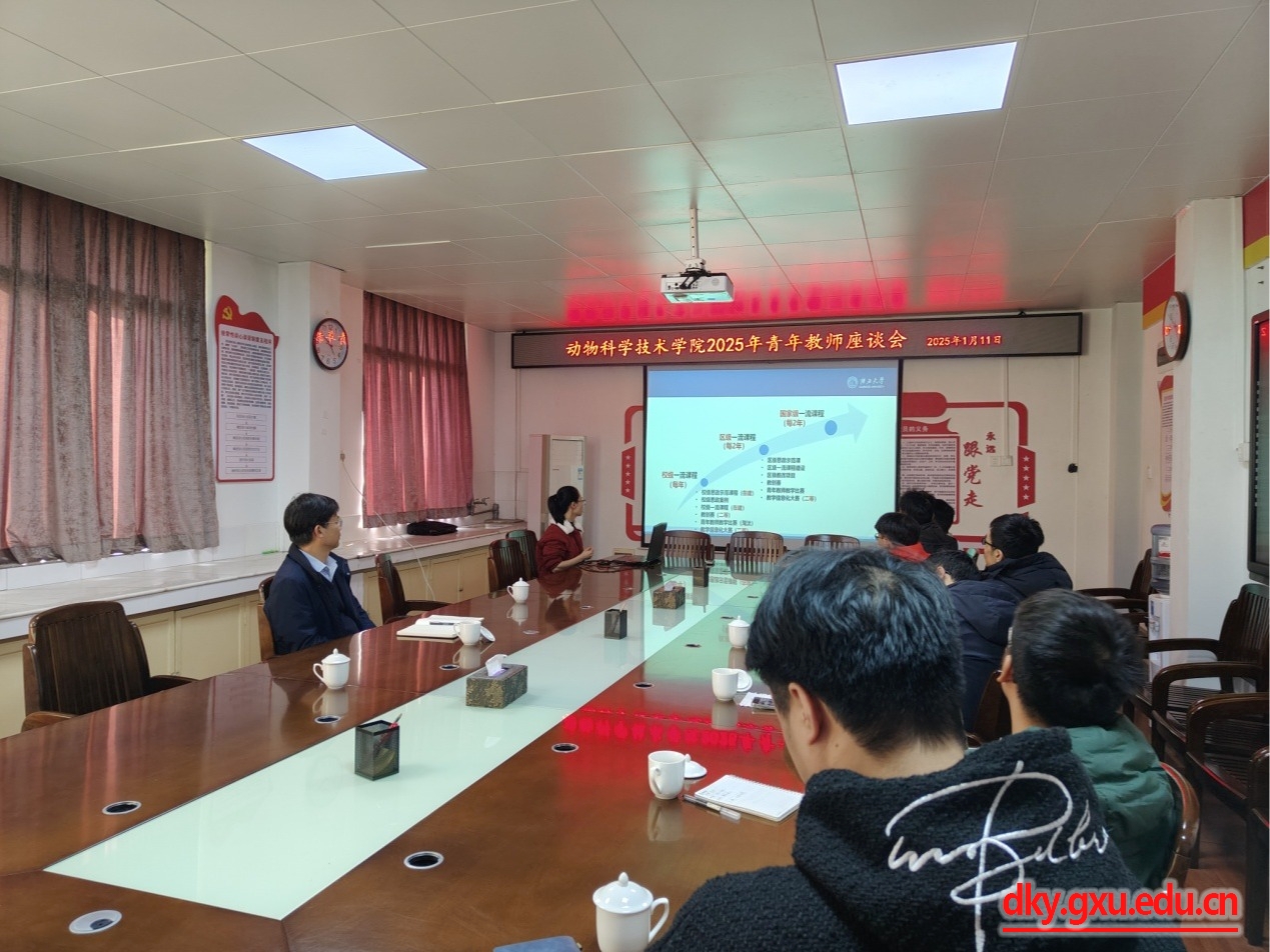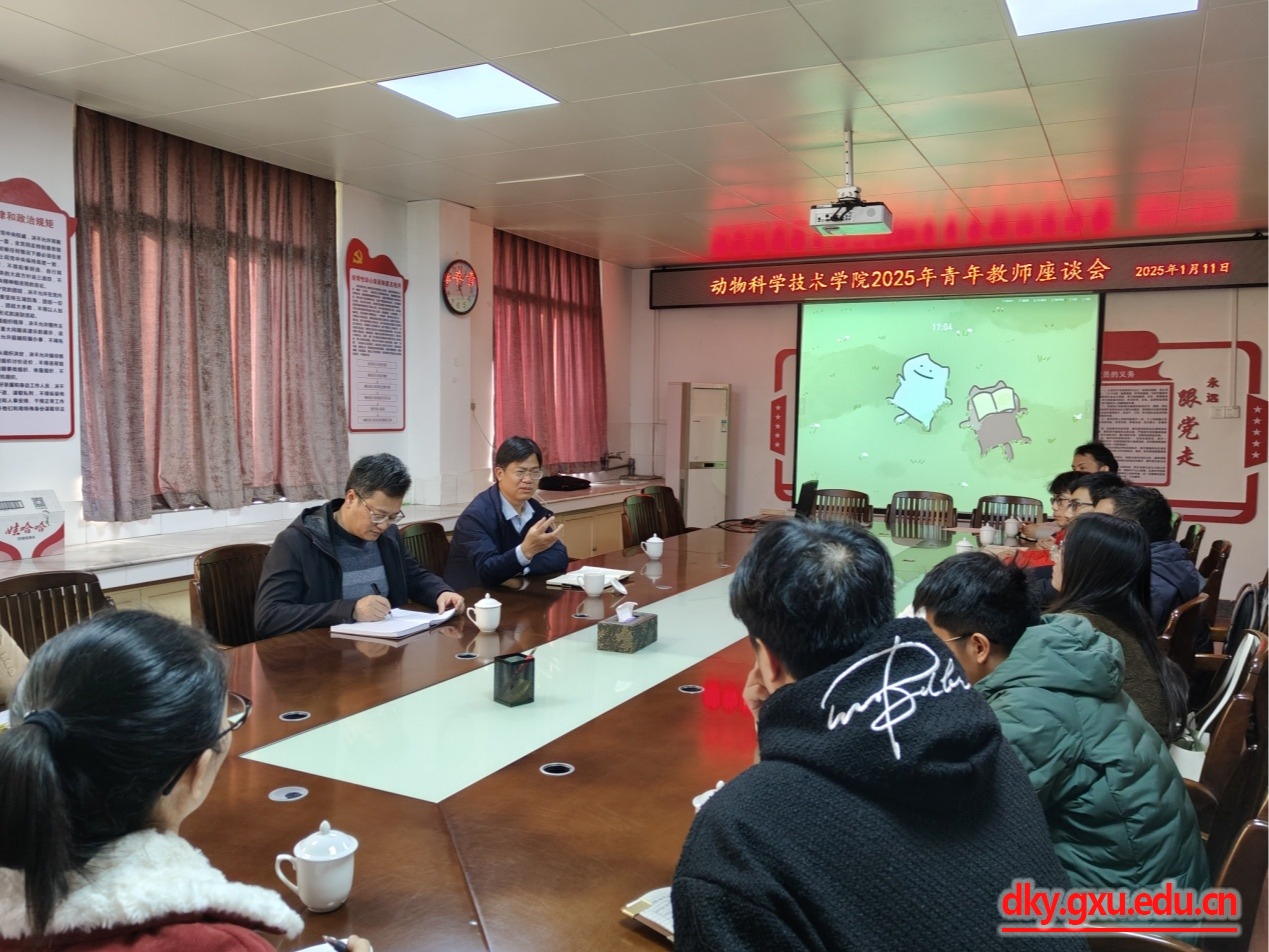 会上学院新入职青年教师分别介绍了个人在教学安排、科研情况、职业发展等方面的情况和遇到的困难,提出需要解决的问题。韦小强书记和蒋钦杨副院长一一回答了青年教师们关于教学科研政策上的疑问,解答了他们目前在教学、科研上的困惑。动物科学系黄洁萍老师、动物医学系韦英益老师分别分享了个人在课程建设、课堂授课、思政教育等方面的经验。韦小强书记与青年教师就如何提高业务水平的办法及职业发展规划进行了充分的交流探讨,对我院青年教师工作做了总结和动员。