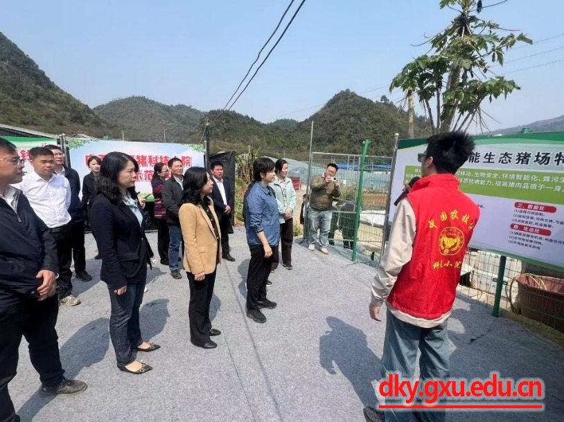 揭牌仪式后,与会人员参观了德保生猪文化展示馆,详细了解企业运营情况以及科技小院的研究进展与成果。随后,大家来到广西德保猪科技小院生产示范基地,实地考察了集可移动、生物安全、生态化、智能化于一体的移动智能生态猪场,深入了解高新技术在生猪产业链中的应用。36365线路检测登录入口硕士研究生邵涵说:“入驻小院以来,我们在欧阳康副教授的指导下,通过实地调研,找出当地在生猪养殖过程中存在的问题,重点针对疾病防控、饲料配比、猪舍环境优化等方面进行分析研究,把课堂所学用于生产实践中,不仅得到了更好的锻炼,也为助力当地生猪产业的发展贡献了科技力量。”