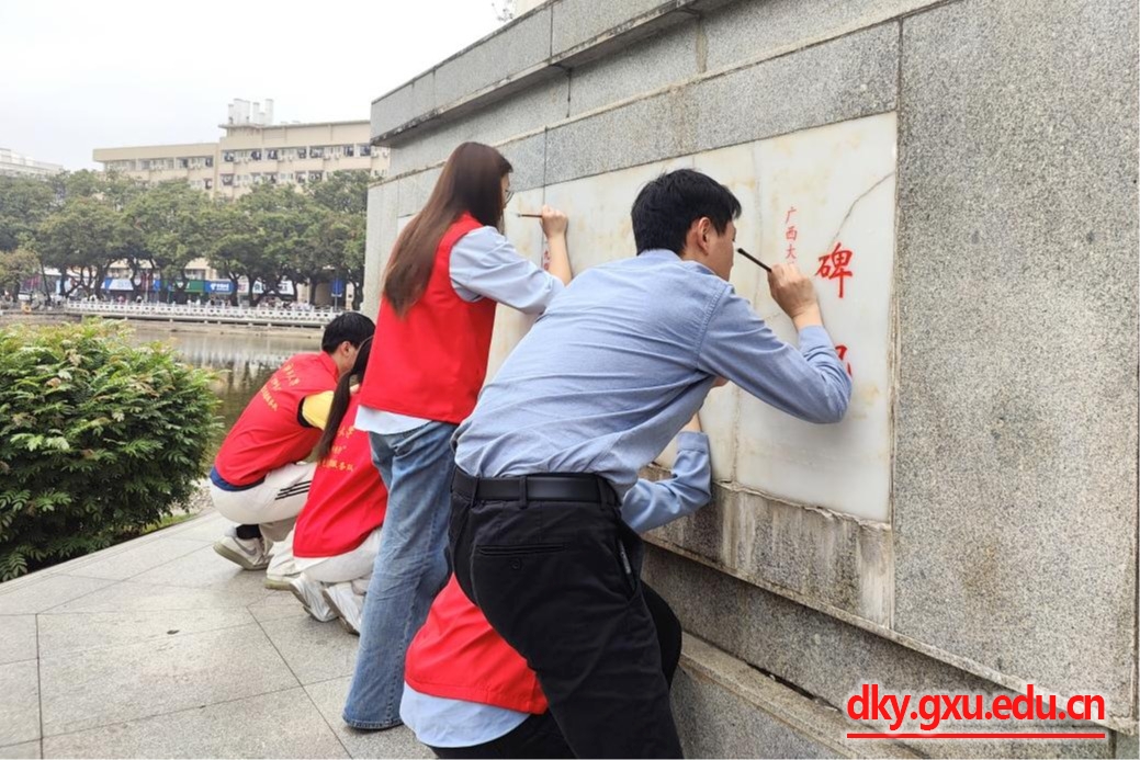 经过时间沉淀和风雨剥蚀,纪念碑的碑文已逐渐褪色。师生们怀着敬仰之情仔细擦拭碑体上的微尘,认真用画笔为碑文描摹填漆。描红一笔,更多一分怀念;描红一画,更增一分敬意。“为纪念碑文‘描红’,给英雄事迹‘上色’,是一份纪念,一份传承,更是一次精神洗礼。”畜牧专业2024级硕士生梁雯静同学说道。