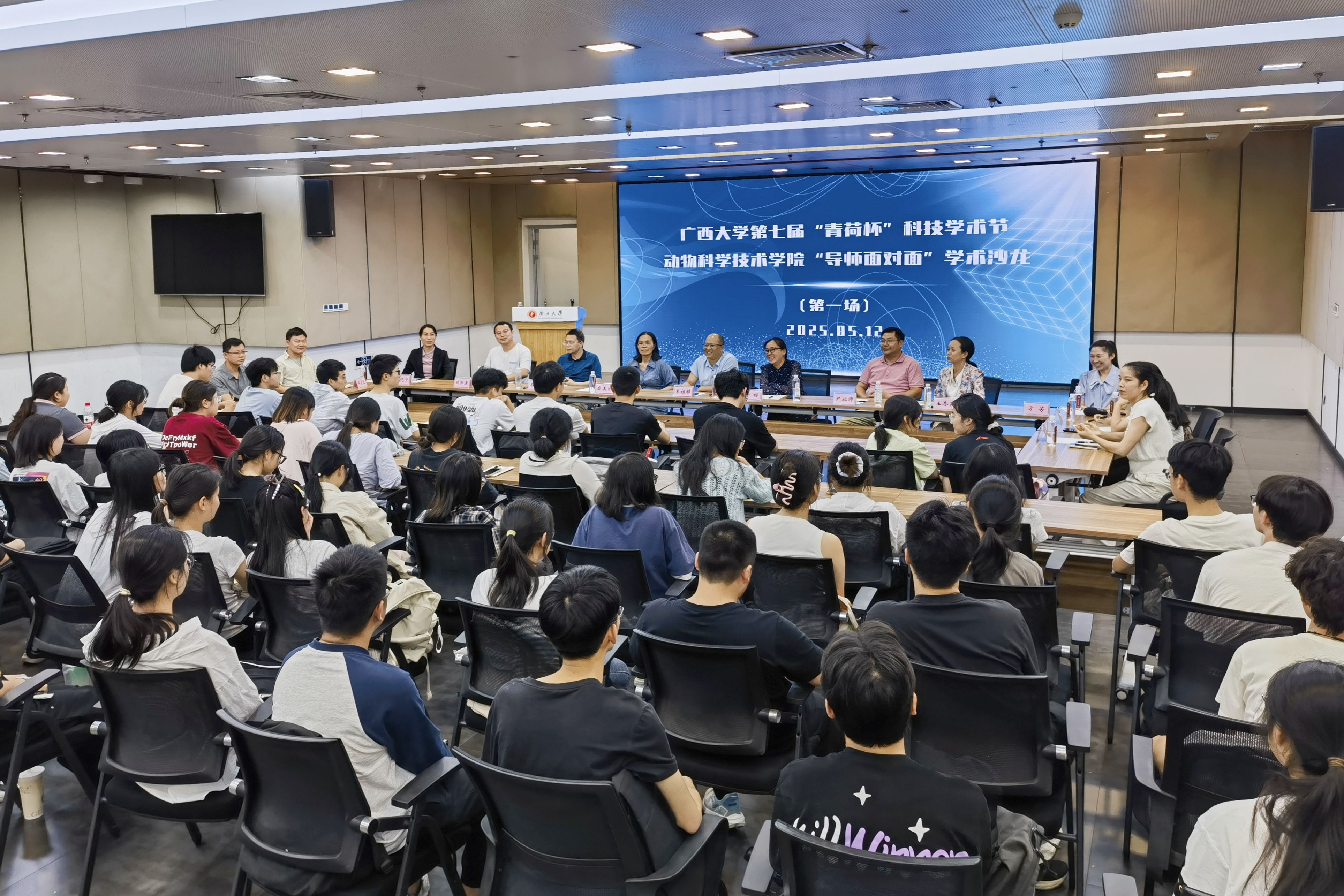 为巩固专业思想,加强学风建设,增进师生交流,营造学术氛围,5月12日晚上,36365线路检测登录入口在大学生活动中心三楼会议厅举办第三季“导师面对面”学术沙龙(第一场),邀请韦祖樟、陈樱、磨美兰、尹业师、王冬英、韦天超、方芳、欧阳康、李晓宁、宋星桔、邸文达、黄鉴妮、覃一峰13位导师嘉宾到场分享个人经历、人才培养和科研方向,并与学生互动交流,共同探讨学业规划、职业发展和个人成长。动物医学专业2024级全体本科生参加此次活动。