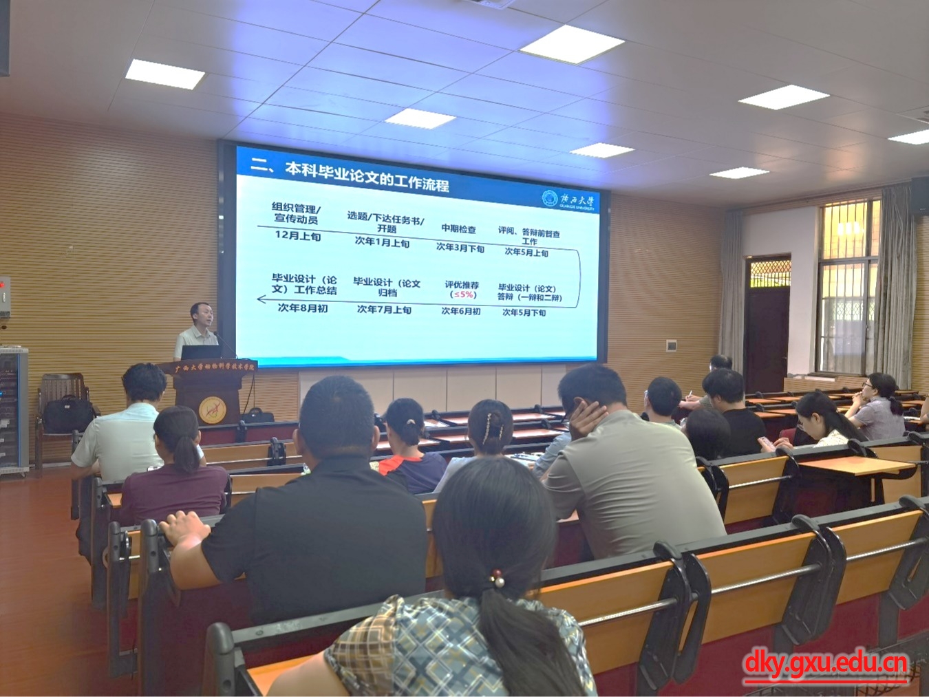 宋子仪老师汇报了本科生毕业论文完成情况及存在的问题。他指出,本学期毕业论文整体质量较高,但仍存在部分学生论文格式不规范、个别学生论文内容不够充实等问题,建议加强指导教师培训、严格论文查重和评审环节、规范论文格式要求。