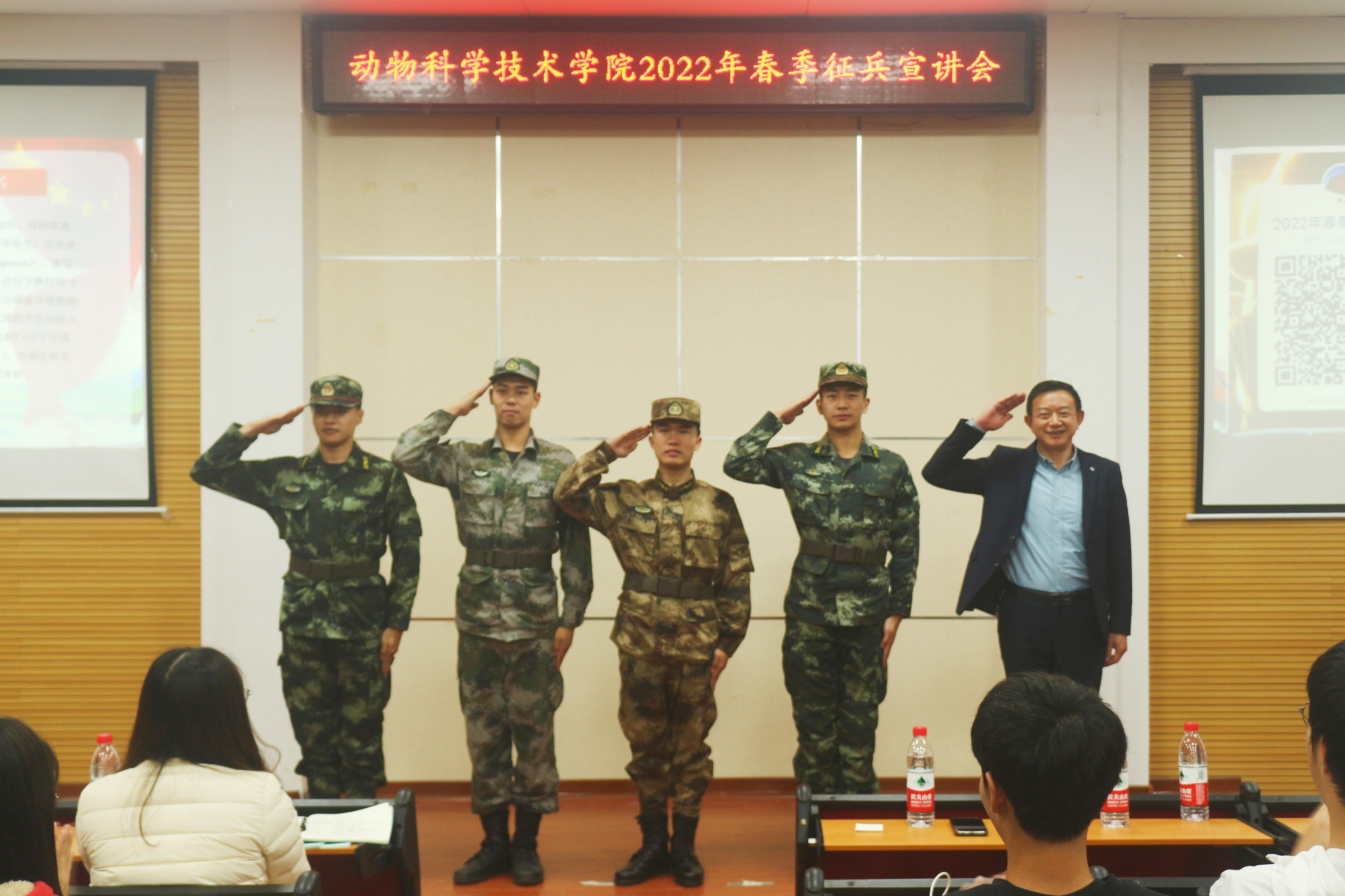 陈榕平老师简要介绍了学校的征兵工作,并结合实际案例,指出大学生入伍对厚植爱国主义情怀、培养吃苦耐劳精神、提升综合素质能力有着重要作用,希望同学们珍惜机会、抓住机遇,勇于吃苦、敢于担当,踊跃报名参军,为实现中华民族伟大复兴贡献青春力量。