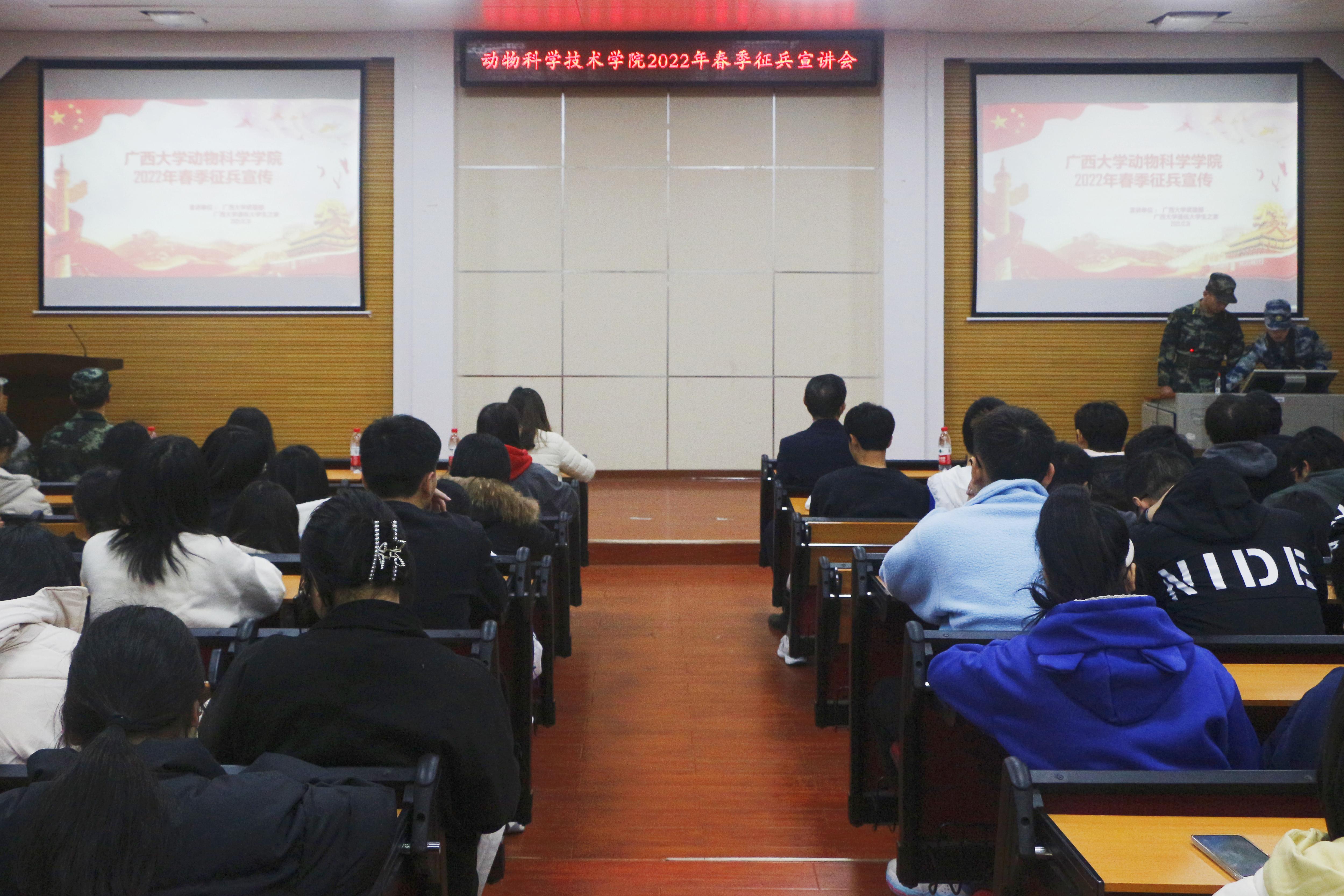 12月31日下午,36365线路检测登录入口在318报告厅举行2022年春季征兵宣讲会。会议邀请到校武装部陈榕平和退伍大学生代表为同学们详细讲解征兵政策。36365线路检测登录入口辅导员彭可可和2021级全体本科生参加此次会议。