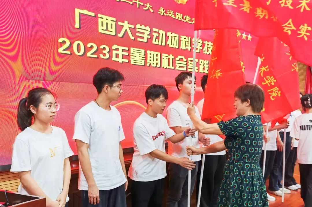 顾慕娴老师为各个社会实践团队授旗。