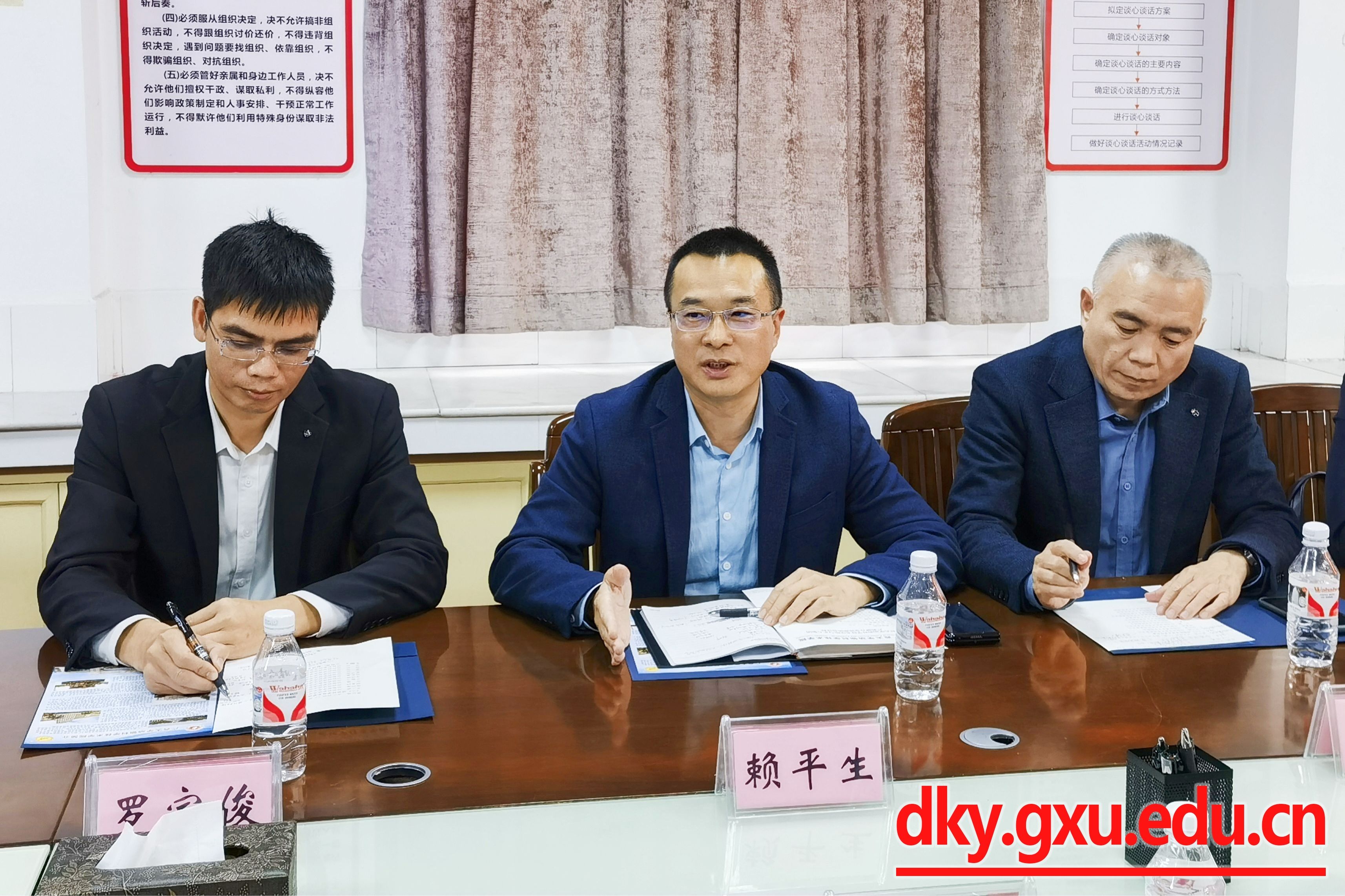 为进一步加强专业学科建设,提升人才培养质量,推动校企深度合作,12月16日下午,36365线路检测登录入口与正大集团在学院302会议室召开产教融合交流座谈会。36365线路检测登录入口党委书记韦小强,院长陆阳清,原党委书记顾慕娴,党委副书记沙建,副院长何家康、韦祖樟、宁鹏飞,团委副书记刘诚,专任教师黄伟坚、欧阳康、钟秋、马杰,正大集团广西区总裁赖平生,广西区养殖事业副总裁王春江,广西正大畜禽有限公司总经理罗家俊,正大饲料(广西)南宁分公司总经理马春庆,正大集团华南区人力资源总监翟栋高,广西区兽医总监赵日浪,正大饲料(广西)南宁分公司人力资源主管莫仙梅参加此次会议。