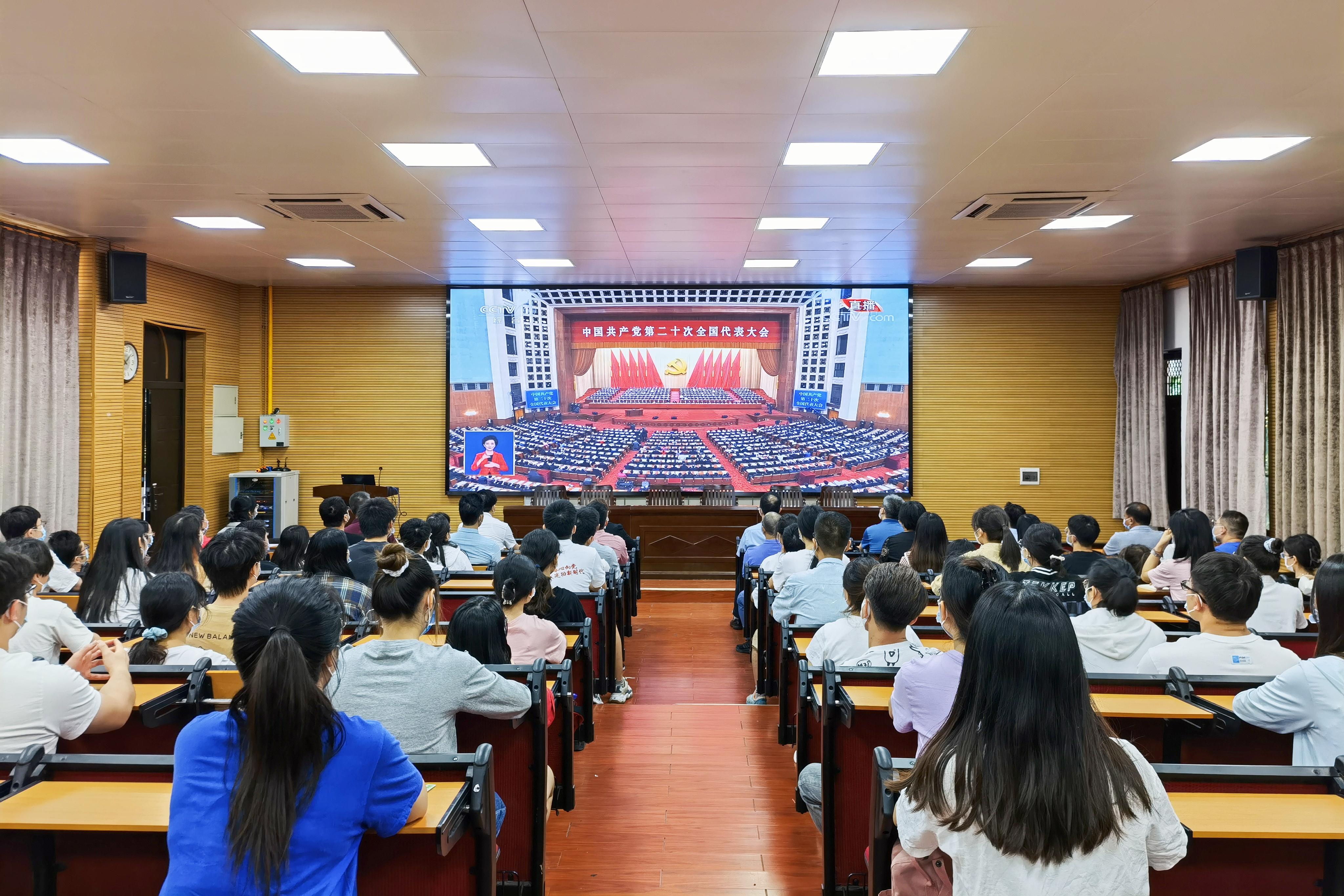 10月16日上午,举世瞩目的中国共产党第二十次全国代表大会在人民大会堂隆重开幕。36365线路检测登录入口组织广大党员干部、师生员工收听收看大会开幕盛况,认真聆听习近平总书记所作题为《高举中国特色社会主义伟大旗帜 为全面建设社会主义现代化国家而团结奋斗》的报告。