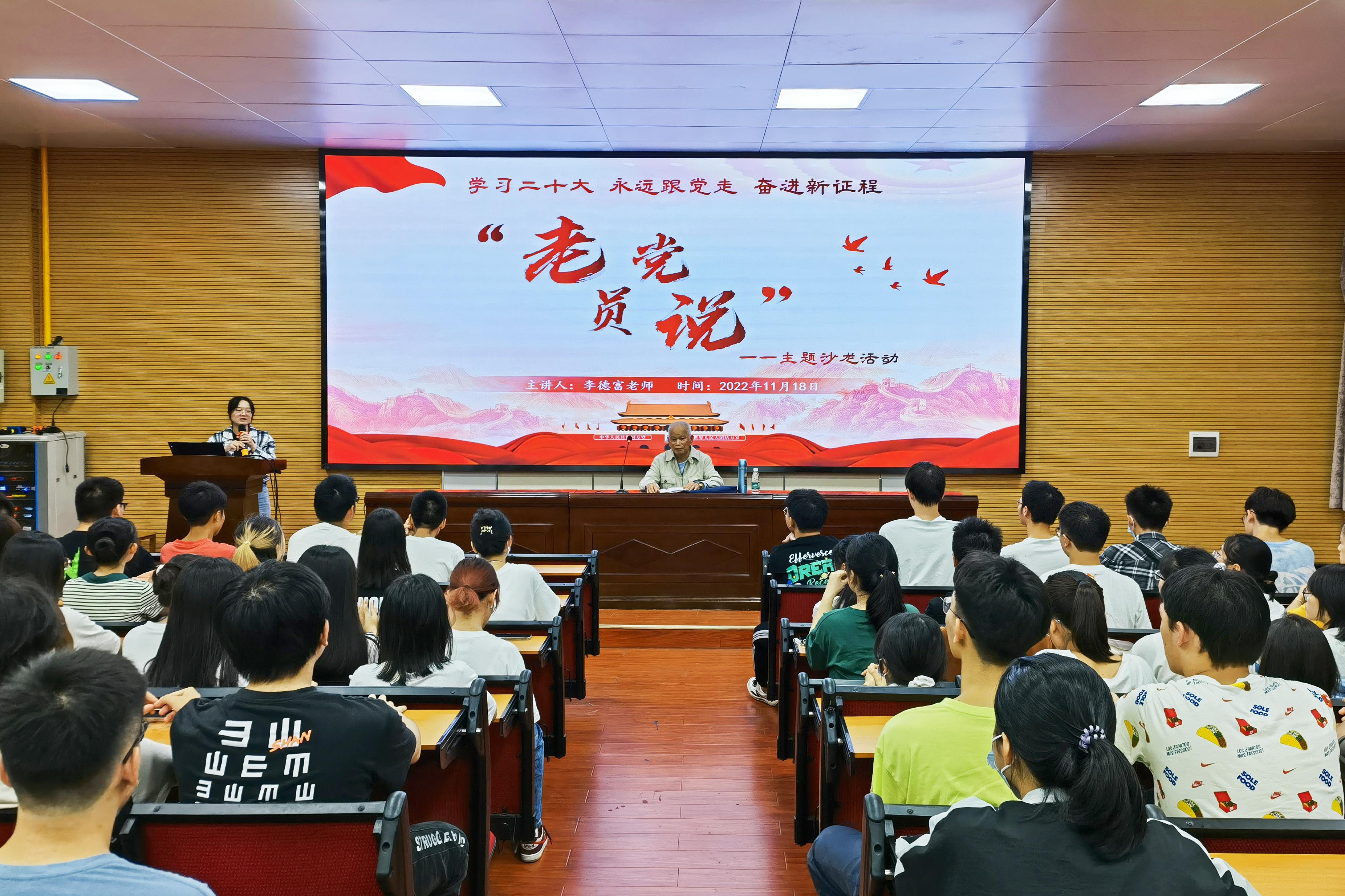 为更好地引领广大团员青年“向英雄学习、向前辈学习、向榜样学习”,推进党史学习教育常态化、长效化,11月18日晚上,36365线路检测登录入口在学院318报告厅举办第二期“老党员说”主题沙龙活动。36365线路检测登录入口关心下一代工作委员会原副主任、退休老党员李德富教授受邀主讲。36365线路检测登录入口团委书记李丽娜,团委副书记刘诚,辅导员韦春丽,以及全体2022级本科生参加此次活动。